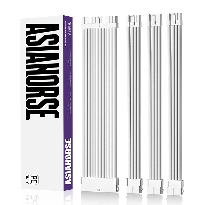 AsiaHorse 16AWG Sleeved PSU Extension Cable Kit Soft Braided Custom Mod Cables with Color Combs 24-Pin 8-Pin 6+2-Pin 4+4-Pin Connectors 30CM Snow White