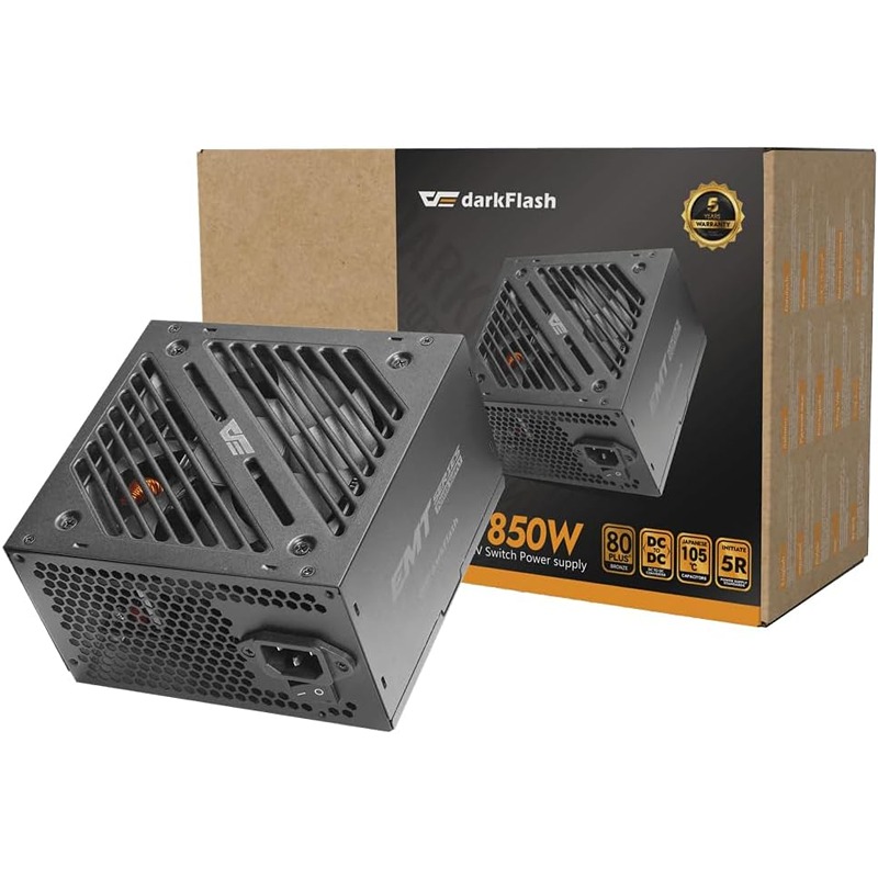 DarkFlash EMT850 850W 80+ Bronze Non-Modular Power Supply, Japanese 105°C Capacitors, FDB Fan, Triple PCIe Connectors — Black