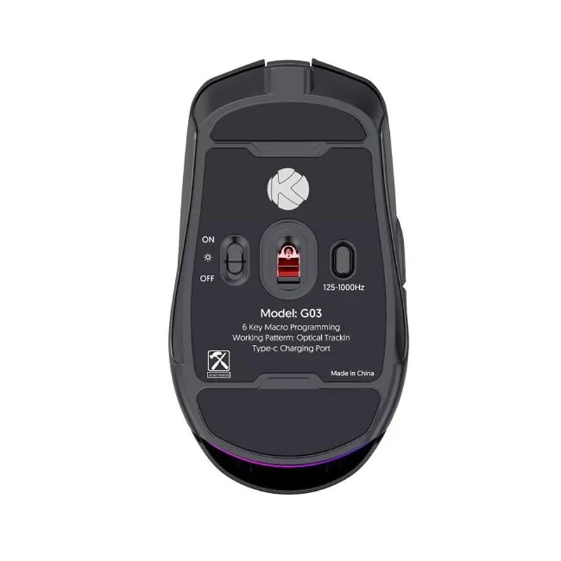 KGaming KO3 Tri‑Mode Wireless Gaming Mouse – Wired/2.4GHz/Bluetooth Connectivity, Up to 16,000 DPI, Lightweight 82.5 g (Black)