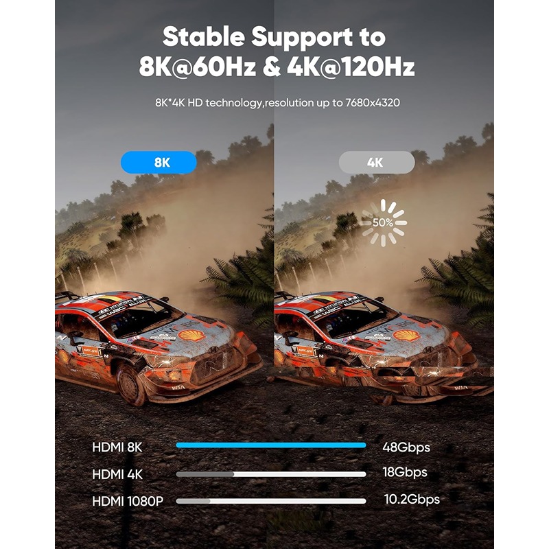 • Supports 8K@60Hz and 4K@120Hz resolutions