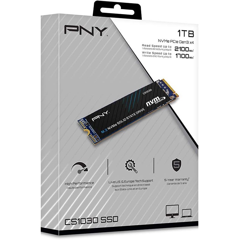 PNY CS1030 1TB M.2 NVMe PCIe Gen3 x4 Internal SSD, 2100MB/s Read, 1700MB/s Write